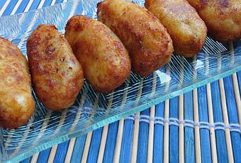- Tomar porciones, pasar por huevo batido y pan rallado, y freír en abundante aceite muy caliente, poca cantidad cada vez, para que no se abran. También se pueden congelar después de rebozadas y sacar del congelador 1 ó 2 horas antes de freír.