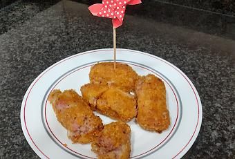 Hoy con unas pequeñas sobras he elaborado estas croquetas que han quedado muy buenas.INGREDIENTES:La pulpa de una berenjenaCarne picada de ternera y cerdo1 cebollaUna cucharada de tomate fritoUnos piñonesUna lata de patéINGREDIENTES PARA LA BECHAMEL:LecheHarinaPARA EL REBOZADO:Pan rallado HarinaHuevo batidoAceite de olivaELABORACIÓN:En una sartén con un chorrito de aceite añadiremos la cebolla picadita y la pulpa de la berenjena, pochamos y cuando la cebolla y la berenjena casi estén añadimos la carne picada y la vamos dorando. Un vez casi esté añadiremos la cucharada de tomate frito y los piñones previamente puestos en agua caliente una media hora, mezclamos bien y por último añadiremos el paté, mezclamos bien y retiramos del fuego. En una cazuela junto con la harina y vamos preparando la bechamel añadimos leche hasta que la masa quede doradita y espesa. Añadiremos la mezcla en un bol de cristal tapado con papel film dejamos enfriar. Introduciremos la masa en la nevera durante un día.Con la ayuda de dos cucharas formar las croquetas pasándolas por harina, huevo y pan rallado... con este orden.En una sartén añadiremos abundante aceite y cuando el aceite este caliente las iremos friendo. En un plato pondremos papel de cocina y las iremos poniendo para que adsorba bien el aceite. Ya tenemos nuestras exquisitas croquetas.