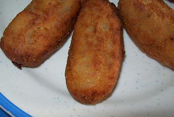 - Dale forma a las croquetas y pásalas por huevo batido y luego por pan rallado.