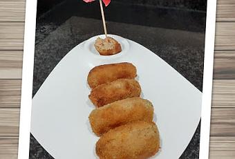 Hoy unas deliciosas croquetas de cocido:INGREDIENTES:El resto de la carne del cocido(gallina, morcillo de ternera, jamónetc..)1 cebolla4 cucharadas de harinaUnos 750 ml de lecheUna pizca de nuez moscadaUna pizca de sal3 o 4 huevosPan ralladoAceite de oliva virgen o virgen extraELABORACIÓN:Con una picadora picamos bien toda la carne y reservamos. Picamos el jamóntambién finamente y reservamos. Pelamos una cebolla y la picamos muy menudita y freímos en una sartén con aceite de oliva virgen o virgen extra. Cuando comience a coger color incorporamos la harina que cocinamos un poco, agregamos entonces todo el picadillo. Mezclamos un minuto más o menos. Y ahora, empezamos a añadir la leche, lo vamos haciendo poco a poco, mientras removemos con una cuchara de madera la mezcla haciendo círculos, una pizca de nuez moscada y otra de sal. La masa debe quedar suave pero con consistencia y estará hecha. Cuando empiece a despegarse de las paredes de la sartén, tened en cuenta que cuando se enfríe espesará algo más.Una vez hecha debemos poner la masa en una fuente, mejor baja. Tapamos con papel de cocina (absorberá la humedad que se formará en el frigorífico) y luego con film y dejamos en el frigorífico unas horas, si podéis hacerlas el día de antes.Al día siguiente vamos cogiendo porciones con una cuchara, le damos forma y pasamosprimero por pan rallado, luego por huevo batido y por último por pan rallado de nuevo. Una vez formadas todas las croquetas, ya sólo nos queda freírlas en aceite de oliva virgen,las sacamos y ponemos sobre papel absorbente para eliminar el exceso de grasa.