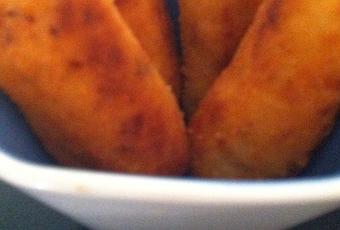 Después solo tenemos que hacer rollitos, pasarlas por harina blanca luego huevo y pan rallado .