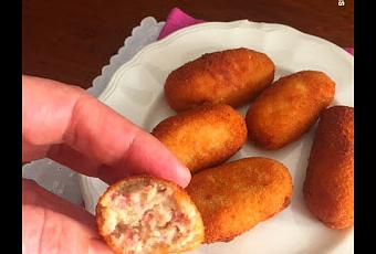 - Formo las croquetas. - Primero les doy forma, yo me ayudo con una cuchara de helado, para coger siempre misma cantidad