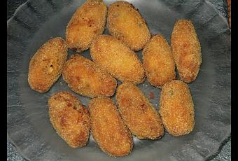 Una vez que está fría le empezamos a dar forma a nuestras croquetas y las pasamos por pan rallado, huevo y pan rallado y las ponemos a freír en abundante aceite caliente y ya están listas para servir.