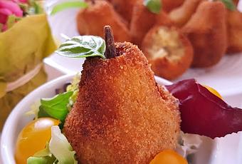 Con la masa de hoy puedes hacer 18 croquetas de queso azul y peras.