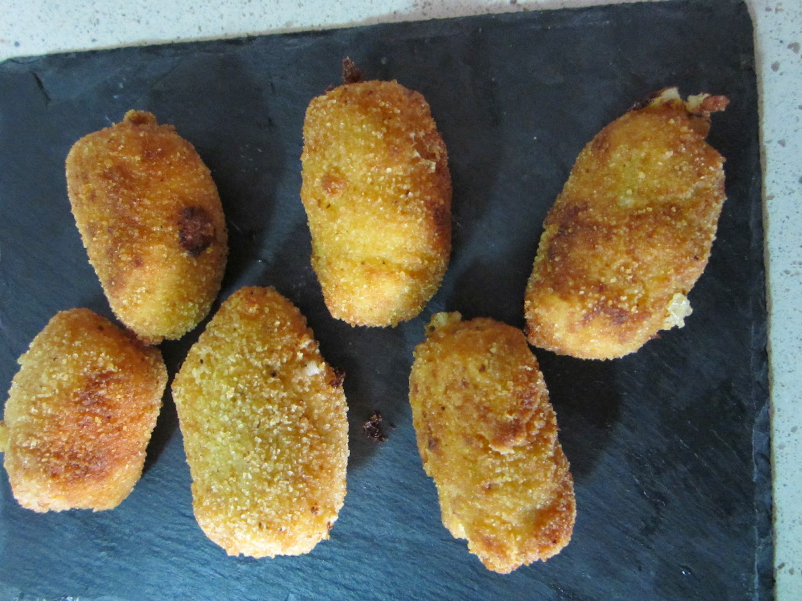 Se fríen en aceite de girasol a fuego medio para que no se deshagan y en tandas de pocas cada vez.Hasta que estén doradas y ya tenemos nuestras ricas croquetas caseras para comer, no dejarán a nadie indiferente!!