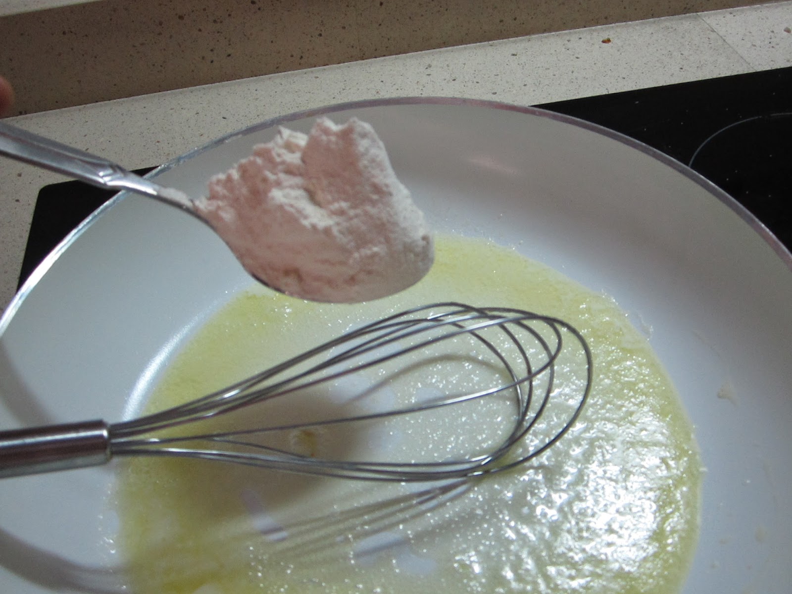 Cuando la mantequilla está derretida añadimos la cucharada de harina.