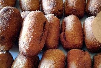 Dejamos enfriar la masa para poder formar las croquetas, yo la deje de un día para otro en el frigorífico.(le damos la forma y las pasamos por harina, huevo batido y pan rallado, calentamos el aceite y conforme las vayamos friendo las colocamos en papel absorvente para que suelten el exceso de aceite que hayan cogido.
