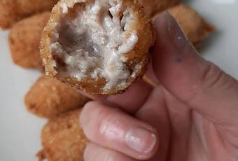 Cuando esté frío dar forma a las croquetas, rebozar en huevo y luego en el rebozado elegido.