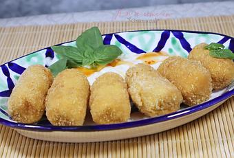 - Se rebozan las croquetas en el pan rallado, después en los huevos batidos y de nuevo en el pan rallado. Este proceso se repite hasta terminar la masa.