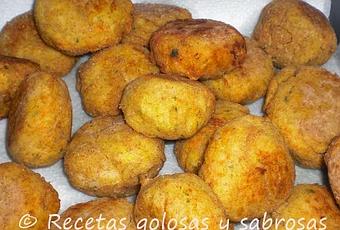 Tomar propociones de masa y dar forma a las albóndigas, pasarlas ligeramente por harina y dorarlas en aceite.
