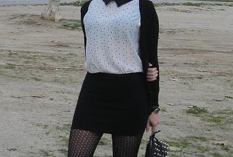 Para no abusar del negro, pero tampoco caer en un mayor colorido que podría no quedar bien, he elegido unas medias caladas que nos permiten evitar esto.