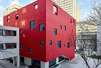 La gran renovación de 26.000m² de un campus educativo existente construido en el decenio de 1980 reevalúa completamente el paisaje, la fachada y el interior. Utiliza el color para pasar de la escala urbana a la humana, y la multifuncionalidad para ayudar tanto al aprendizaje guiado como al pasivo.