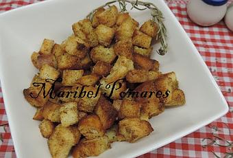100 grs. Pan cortado en rebanadas del día anterior.2 cucharadas de aceite de oliva.Preparado de hiervas para aliñar. Pincha aquí para ver como se hace.
