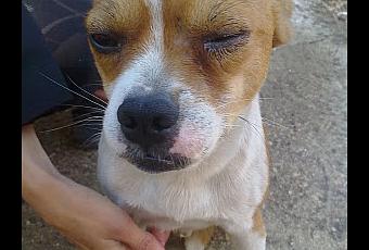 Este perrito de seis kilitos y muy muy cariñoso le han dado una patada en la cara, no puede casi abrir los ojos y tiene la boca hinchadita , necesitamos ayuda para el adopción urgente o casita de acogida para que se recupere , es muy obediente y tranquilo.