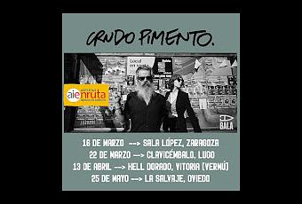La propuesta de gira de Crudo Pimennto nos depara varias fechas dentro de una propuesta muy interesante. Dentro de la gira que presenta AIE, podremos ver cuatro fechas para Crudo Pimento en este 2024.Crudo Pimento siempre son una banda de altas revoluciones, en este caso, podremos ver a la banda en una gira de la mano de AIE. Para quienes no conozcan a Crudo Pimento, son un dúo muy interesante llegado desde Murcia, en este tour pasarán por Zaragoza, Lugo, Vitoria y por Oviedo. Os dejamos todas las fechas.