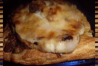 Crujiente de emperador y cebolla confitada, con gratinado de mayonesa.