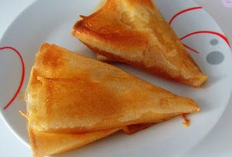 9° Repetimos con las hojas de pasta brick que quedan para formar otros 3 crujientes.