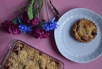 Lo bueno de esta receta es que la puedes adaptarla a tus gustos poniendo las especias que más te gusten y hacerla en diferentes formatos. Yo normalmente la haga en fuente de cristal, como en la foto, pero podéis hacer un poco más de masa y amasarla más para usarla como de base de mini tartaletas o para hacer una tartaleta grande como este crumble de melocotón.