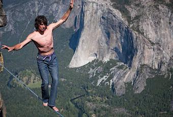 Tras practicar un par de veces sujetado a una cuerda, el temerario Dean potter consiguió superar el reto auto-impuesto cruzar caminando sin arnés una cuerda de 35 metros, sujetada a más de un kilómetro y medio de altura. La proeza quedó documentada en un memorable video.