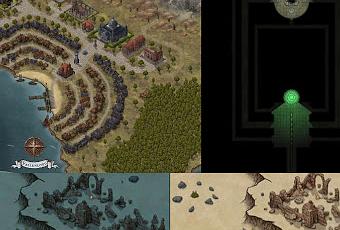 "El primer mapa es una ciudad costera llamada "Fallenlord", disponible en dos versiones, con o sin los diferentes lugares nombrados. Es el lugar perfecto para una investigación de Cthulhu, hay muchos lugares interesantes y sospechosos en esta pequeña ciudad tan cerca del océano. Incluso su plano maestro hace pensar en tentáculos ...