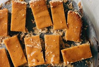 - Forrar un molde cuadrado refractario de 23x23 cm con papel encerado de horno