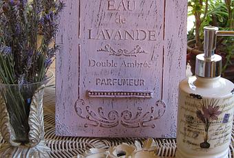 tenia esta maderita de DM ya pintada de color crema y sobre ella he hecho el relieve colocando la plantilla centrada y bien sujeta con cinta de carrocero