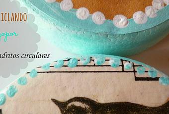 Pegué las láminas sobre los círculos de telgopor y le hice unos puntitos con el culo del pincel alrededor,como para darle un detalle extra.