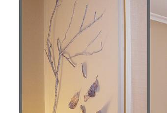 Me llevé unas cuantas a casa, las lavé y las puse en un platillo de madera, sin más. No pensé hacer un cuadro con ellas en aquel momento sino más tarde, al llegar el frío de verdad, es cuando se me ha ocurrido hacer un cuadro otoñal-invernal. Para unificar el colorido de las ramas y las hojas secas, he utilizado pintura acrílica blanca mate.