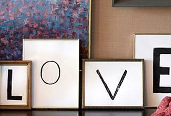 Hoy os dejamos una idea original y sencilla para darle una nuevo uso a los marcos viejos que tenemos en casa con láminas anticuadas. Como veis a continuación, consiste en dibujar en varias cartulinas o papeles diferentes letras que formen una palabra y poner cada una de ellas en un marco. Súperfácil¡¡¡