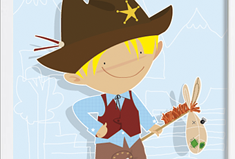 Colorida ilustración con sheriff que da la posibilidad de eligir el color de pelo y añadir el nombre de un niño. Los posters Infantiles de Babyprint son el regalo ideal para los más pequeños de la casa.