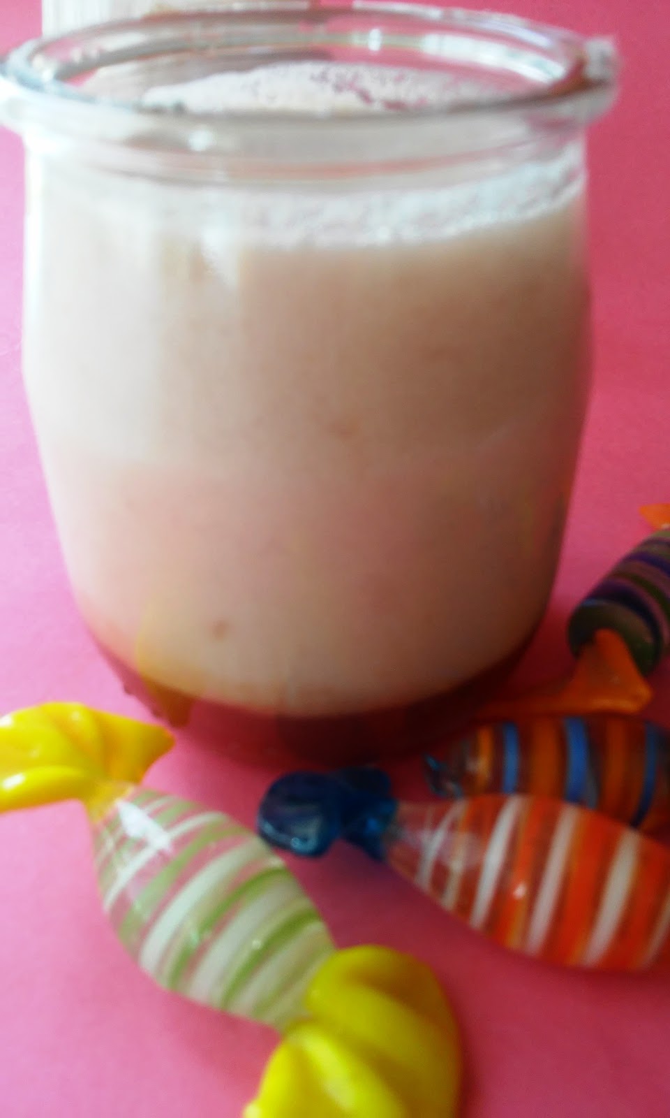 1 sobre de cuajada1/2 l. de leche semidesnatada4 cucharadas de azúcar1 tarrina de frambuesasMermelada de fresas ( receta)