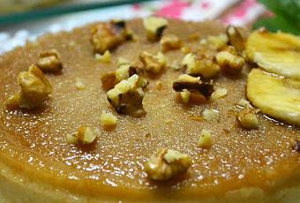Procurad que las rodajas de plátano sean gorditas, yo las hice demasiado delgadas y al verter la crema subieron a la superficie. Motivo por el que al desmoldar los pasteles, el plátano y la nuez quedaron abajo, en lugar de quedar arriba, junto con el azúcar moreno.