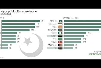 Aunque el islam es la religión mayoritaria en los países árabes —donde más de un 90% de la población se identifica con esa religión—, más de la mitad de la población musulmana a nivel mundial no es árabe ni reside en los países árabes: la región donde se concentran la mayor parte de los musulmanes es Asia-Pacífico. De hecho, el Estado con más musulmanes del mundo es Indonesia, seguido de Pakistán, la India y Bangladés. Egipto es el primer país árabe en la lista, y aparece ya en quinta posición.