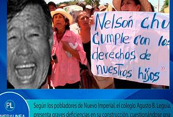 Padres de familia y docentes del colegio Augusto B. Leguía de Nuevo Imperial (Cañete), exigieron al gobernador regional de Lima, Nelson Chui dejar de ser un farsanteCansado de la burlas y mentiras provenientes del Gobierno Regional de Lima (GORE LIMA), Padres de familia, docentes y trabajadores de construcción civil impagos marcharon desde la sede de la Institución Educativa «Augusto B. Leguía» del distrito de Nuevo Imperial (cuya infraestructura se encuentra abandonada producto de la paralización de la obra) hasta el local de la Unidad Ejecutora Lima Sur en San Vicente de Cañete.