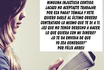 Mira bien en los siguientes versículos la réplica del dueño, que representa a Dios: “Amigo, no estoy cometiendo ninguna injusticia contigo. ¿Acaso no aceptaste trabajar por esa paga? Tómala y vete. Quiero darle al último obrero contratado lo mismo que te di a ti. ¿Es que no tengo derecho a hacer lo que quiera con mi dinero? ¿O te da envidia de que yo sea generoso?” Mateo 20:13-15 (NVI).