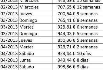 Aquí os dejo una tabla en las que podréis ver los distintos precios desde que los compramos el 16 de enero hasta el 29 de abril, sólo un día antes de partir. Espero que os sirva de ayuda.