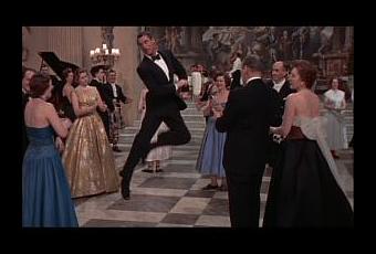 Aquí tenemos al gran Cary Grant dejándose las articulaciones en plena efervescencia danzarina al estilo escocés en la deliciosa Indiscreta (Indiscreet, Stanley Donen, 1958), magnífica comedia romántica, coprotagonizada por la no menos grande Ingrid Bergman, que responde adecuadamente a lo que constituye la esencia del género, esto es, el choque amoroso de dos personalidades antagónicas, a priori con objetivos e intereses contrapuestos, y que se enfrentan, a través de situaciones agridulces que combinan humor y drama, al triunfo de sus mutuos sentimientos. En este caso, todo ocurre bajo la batuta del gran maestro del musical Stanley Donen, y ese amor del director por el musical impregna de algún modo todo el metraje en cuanto a estilo, composición de planos y secuencias, ritmo y, obviamente, el magistral tratamiento de la descacharrante escena en la que Grant se deja llevar, de manera un tanto incoherente respecto a lo que su personaje ha reflejado en los minutos previos, por los alegres acordes de la tradicional música de las Highlands.
