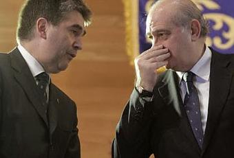 Jorge Fernández Díaz, ministro del Interior, conversa con Igancio Cosidó, el director general de la Policía.