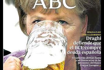 Merkel viene el jueves y tratará de ponernos nuevos deberes. Mientras, Rajoy ya está entrenando, no quiere problemas de contracturas cuando tenga que doblar la cerviz. Lo único que espero es que no venga con tres jarras de cervezas bebidas, como las de la foto de la portada de ABC. Parece que es habitual que lo haga cuando tiene que dar instrucciones severas, o sea a menudo.