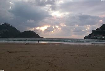 Pasear por tus sitios queridos, por una playa, la de La Concha, puede adquirir matices diferentes. Las luces del día que se va, se resisten y juegan a quedarse en la orilla. Huellas de pasos masajean la arena empapada de cielo. En la lejanía, unos perros jugando mientras sus humanos hablan y hablan; contigo la soledad buscada. Una soledad dulce y cariñosa, una soledad entre dos luces, como la playa, que acaricia el alma y aviva el fuego del recuerdo.La Isla de Santa Clara, frontón de miradas, tapa las últimas luces, y sirve de ancla a un horizonte que no quiere marcharse. Fuera de la playa, en el paseo, los flashes denotan al espectador de postal en movimiento, al coleccionista de marcos incomparables. El voyeur de momentos inolvidables, se esconde tras una barandilla con tintes ahora blanco-violetas. La vendedora de golosinas guarda los últimos barquillos antes de cerrar por hoy.