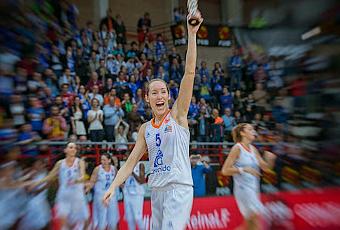 Marta Fernández celebrando la Copa de la Reina de Arganda del Rey. Foto: FEB.