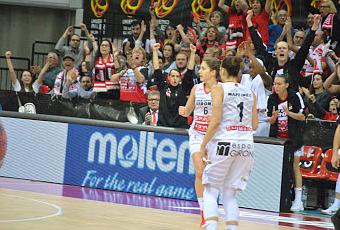 Rosó Buch y Núria Martínez celebran una canasta en la final de la Copa de la Reina. Foto: Toni Delgado / Cronómetro de Récords.