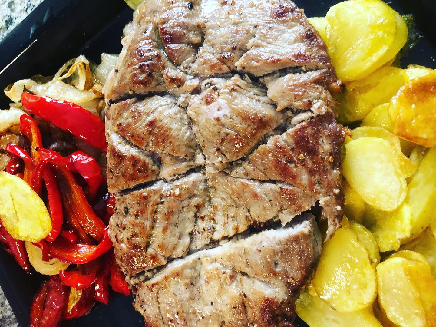 En la foto veis un solomillo que he hecho hoy con patatas, pimientos y cebolleta, que me ha salido de muerte!!!, pero la de cacharros que he manchado oye... a mí estas cosas de aceite y demás... como que ufff, nunca me ha gustado cocinar, pero yo creo que con la edad menos...
