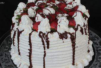 Seguramente ya habrás visto la famosa tarta de natas y fresas con unos chorreones de chocolate que dan unas ganas irresistibles de meter el dedo y que ha dado la vuelta por todas las redes.La tarta en cuestión no parece pertenecer a ningún blog de cocina. A mí por lo menos, me ha llevado siempre a una web de imágenes, fondos, etc.. pero sé que ha sido muy comentada y deseada por todos los que la hemos visto.En mi caso, desde el primer momento que la ví, supe que tenía un problema: tenía que hacerla sí o sí. Guardé la imagen y cada vez que la veía, crecían mis ganas de hacerla. Hasta que me puse manos a la obra.