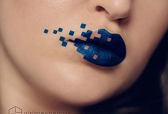 Andrea realiza en sus labios imágenes de la naturaleza, personajes de dibujos animados o figuras geométricas. Nido de abejas, hojas, mosaicos, arabescos, olas son solo algunos de los diseños extraordinarios que esta artista de maquillaje logra hacer en sus labios usando solo un pincel y lápices labiales.