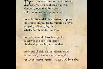 Lope de Vega (o su negro de turno) escribió este poema donde se enumeran los efectos de enamorarse. Si tienes todos sí, estás enamorado. También tienes otras cosas que te podrá diagnosticar un galeno de esos que te toman el pulso y te ponen un palo en la boca.