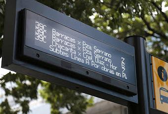 Los carteles colocados en los paradores de los Metrobuses tienen una dimensión de 1,20 metros x 30 centímetros, son de metal y poseen una pantalla LED con líneas de texto que informan sobre la línea de colectivo, en qué dirección va el interno y en cuánto tiempo va a llegar a la parada.