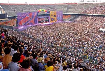 Parecía que todo estaba previsto, incluso el concierto comenzó con unos minutos de retraso. Y en el preciso momento en que los músicos subieron a escena se produjo un instante para el recuerdo. Visto desde una grada lateral muy cercana al escenario, cuando los Rolling Stones salieron, los no menos de 40.000 espectadores que cubrían el césped se levantaron al unísono y dieron, todos a la vez, dos pasos hacia adelante mientras un atronador rugido puso millones de pelos de punta. Fue como si todo el público fuera uno. La enorme masa de gente actuó sincronizada produciendo un efecto escalofriante, imborrable.