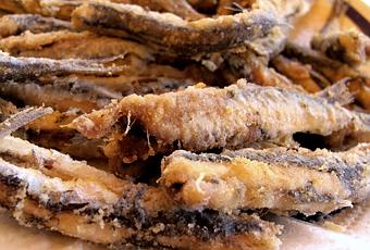 Estos boquerones corrían como centellas plateadas por el mar. Ayer por la noche. De madrugada saltaban sorprendidos en la cubierta del barco que les había raptado y los tenía que llevar al serrallo. A las 9, se mostraban inquietos en el marmol helado de Ca n'Àngela (en Portocolom, C/ de la Santa María, la mejor y más honesta pescadería del entorno). Nos guiñaron el ojo de inmediato: alegría para el paladar sensible, consuelo de bolsillos. Gustan a todos y a todos saben a poco. Empiezas y no paras. Ligeramente enharinados con semolina de trigo blando de Mallorca y fritos con aceite de Caimari, si consigues ese punto en que la piel cruje ligera y el interior explota, suave y terso, en sabores de mar y de sencillo pescado azul, triunfas. Aunque no me considero especialista en frituras, procuro aprender y aplicarme. Ésta salió bien. Disfrutamos con el boquerón.