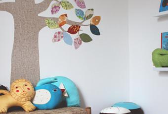 Simplemente maravilloso! Un cuarto de juegos ideal para pasar horas y horas con los más pequeños de la casa. Resulta una combinación de elementos preciosa, llena de vivos colores y mullidos poufs y cojines. Con unas cuantas baldas para poner cuentos, un bonito vinilo en forma de árbol y una alfombra con motivos geométricos podemos conseguir una estancia tan alegre y funcional como ésta....Nada más allá de la realidad!